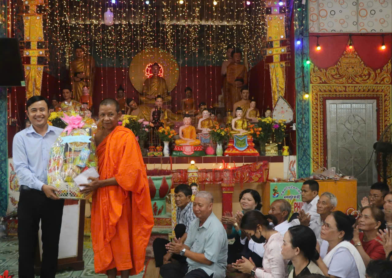Xã Hồ Đắc Kiện thành lập đoàn thăm, chúc mừng các chùa Phật giáo Nam tông Khmer và người có uy tín, gia đình chính sách là người dân tộc Khmer.