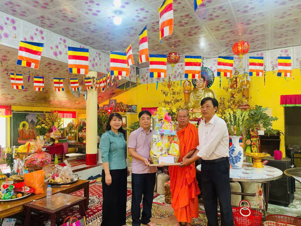 Tại chùa Pro Lean đến thăm và chúc mừng Ban quản trị chùa có bà Huỳnh Thị Mai Phương, Phó Bí thư Thường trực Đảng ủy, Chủ nhiệm Ủy ban kiểm tra Đảng ủy, ông Hoàng Vũ, Phó Chủ tịch UBND xã, ông Thái Thanh Nhĩ, Trưởng Phòng Văn hóa- Xã hội, ông Bùi Khuyến Thiện, Chánh văn phòng UBND xã.